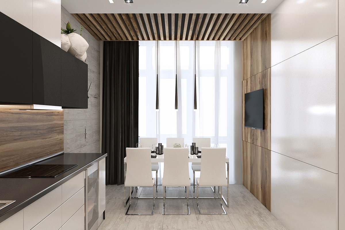 Κουζίνα μοντέρνα με προσόψεις από pet ματ. Εναλλακτική επιλογή (ακριβότερη) προσόψεις MDF λακαριστό-ματ σε πλειάδα αποχρώσεων.Άλλη εναλλακτική επιλογή, μελαμίνη Egger 18 χιλ. (η οικονομικώτερη επιλογή). Η ανυπαρξία λαβών (σύστημα gola) και η διχρωμία ως προς τον μαύρο πάγκο αναδεικνύουν την όλη σύνθεση με τρόπο θετικό.