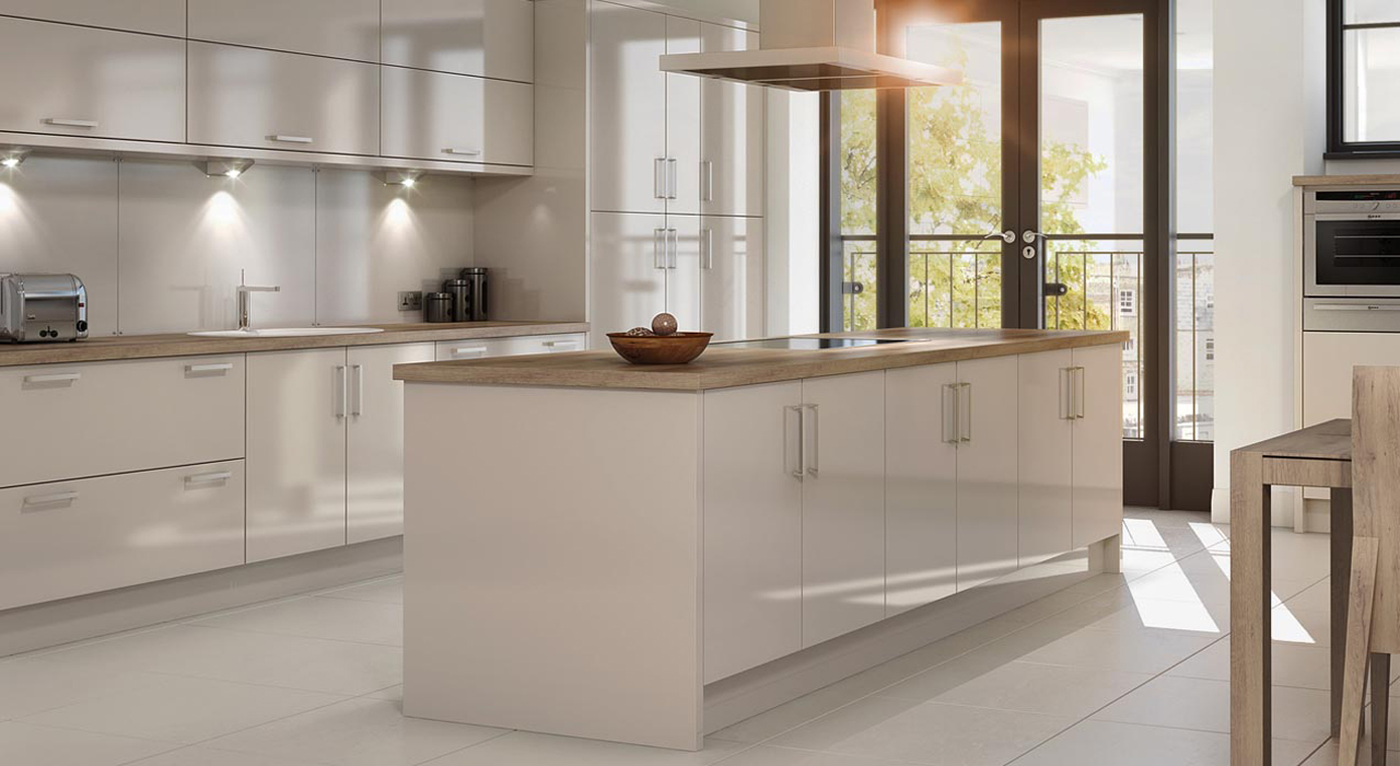 Κουζίνα μοντέρνα με προσόψεις από mdf σε λάκα μάτ σε αρμονικό συνδυασμό με πάγκο από ατόφιο ξύλο Δρυός.Παρόμοιο αισθητικό αποτέλεσμα μπορεί να γίνει μέ προσόψεις από μελαμίνη Egger 18 χιλ. Ερμάρια κρεμαστά ανακλινόμενα και extra συρτάρια με μηχανισμό επιβράδυνσης.