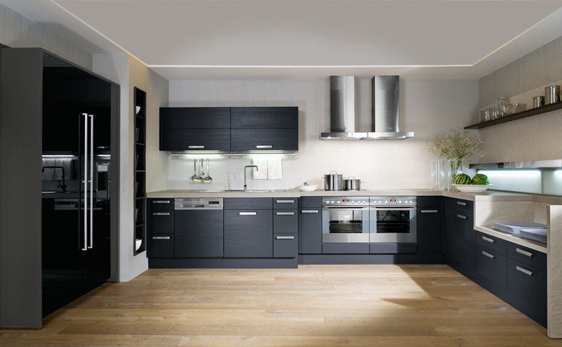 Κουζίνα μοντέρνα εντυπωσιακή με προσόψεις από μελαμίνη 18 χιλ. σε χρώμα γραφίτη σε αρμονικό συνδυασμό του σκούρου με πάγκο σε ανοιχτό χρώμα. Οι ανοξείδωτες λαβές των ερμαρίων καθώς και οι συσκευές προσδίδουν στο σύνολο έναν δυναμισμό. Χαρακτηριστικό είναι επίσης η ύπαρξη δύο φούρνων με τις αντίστοιχες καμινάδες.Έπιπλα κουζίνας με την εγγύηση και την αξιοπιστία Sylko-Λιάκος.
