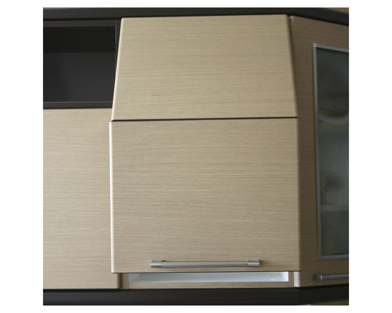 Ανακλινόμενο κρεμαστό ερμάριο με τον κορυφαίας ποιότητος μηχανισμό Aventos HF απο την Blum.