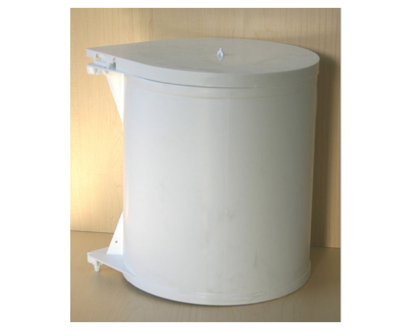 Δοχείο απορριμάτων-σκουπιδοτενεκές πλαστικός λευκός.Το καπάκι ανοίγει με το άνοιγμα της πόρτας του ερμαρίου.