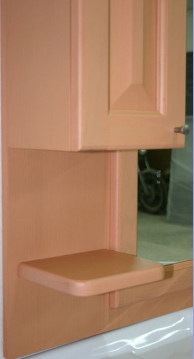 Έπιπλο λουτρού βάσεως και καθρέπτης με δύο ερμάρια. Αποθηκευτικός χώρος απλύτων, στο κέντρο.