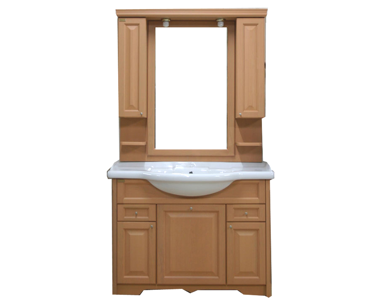 Υλικά κατασκευής: Προσόψεις ημιμασίφ Δρύς. Κάσωμα mdf επενδεδυμένο με καπλαμά δρυός.Ακραίες κολώνες και ράφια καθρέπτη από ατόφιο ξύλο Δρυός. Μεγάλη ποικιλία χρωμάτων