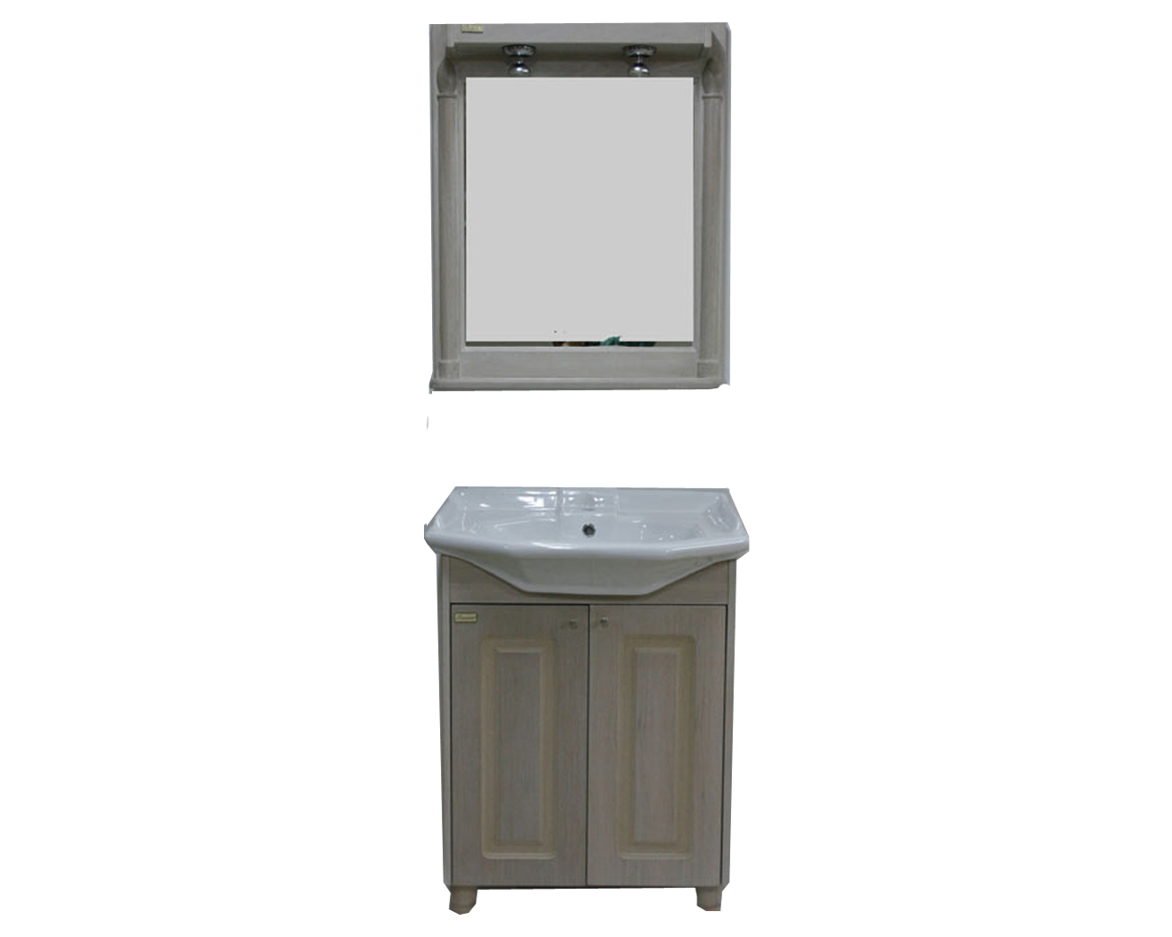 Υλικά κατασκευής: Προσόψεις και κάσωμα mdf επενδεδυμένο με καπλαμά Δρυός. Καθρέπτης ιδιαιτέρου σχεδιασμού από ατόφιο ξύλο Δρυός. Μεγάλη ποικιλία χρωμάτων